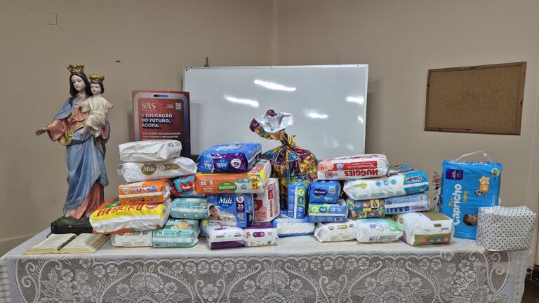 Durante a FEINTER, em sintonia com a Campanha da Fraternidade 2025, foi realizada uma ação solidária que mobilizou alunos, famílias e educadores na arrecadação de fraldas destinadas ao Instituto Madre Santa Paulina, instituição que acolhe gestantes em situação de vulnerabilidade.