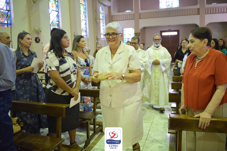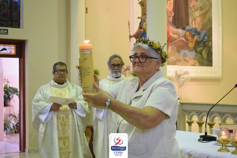 A celebração foi marcada ainda pela Santa Missa em ação de graças, pela entrega simbólica da coroa dourada e da vela, pela renovação dos votos de profissão religiosa e pela entrega de uma homenagem em nome de toda a comunidade escolar.